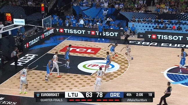 欧锦赛1/4决赛,立陶宛76-87不敌希腊